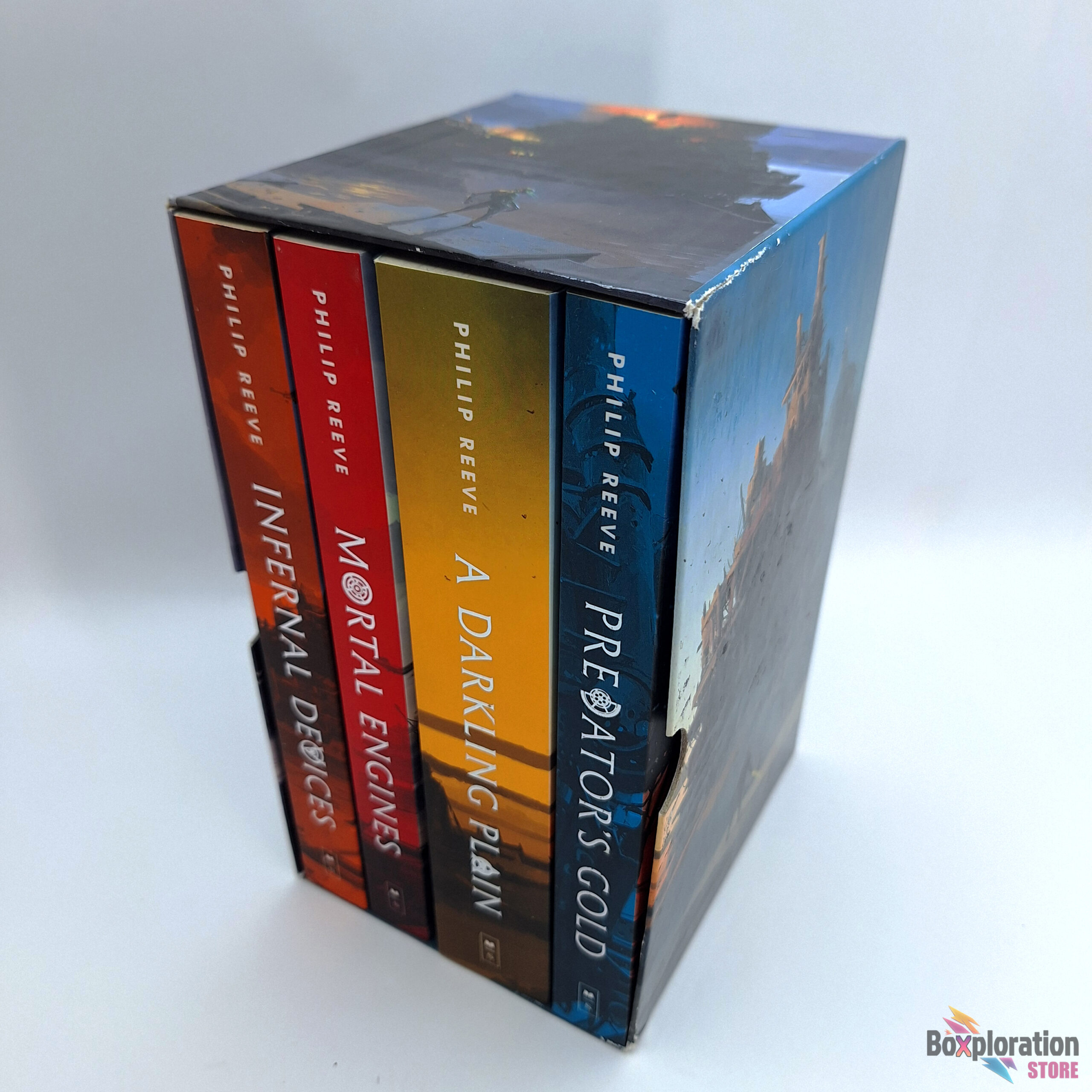 Immerse yourself in the award-winning steampunk fantasy series The Mortal Engines Quartet by Philip Reeve. This complete set of four books takes you on an epic journey through a post-apocalyptic world of moving cities, airships, and unforgettable characters.